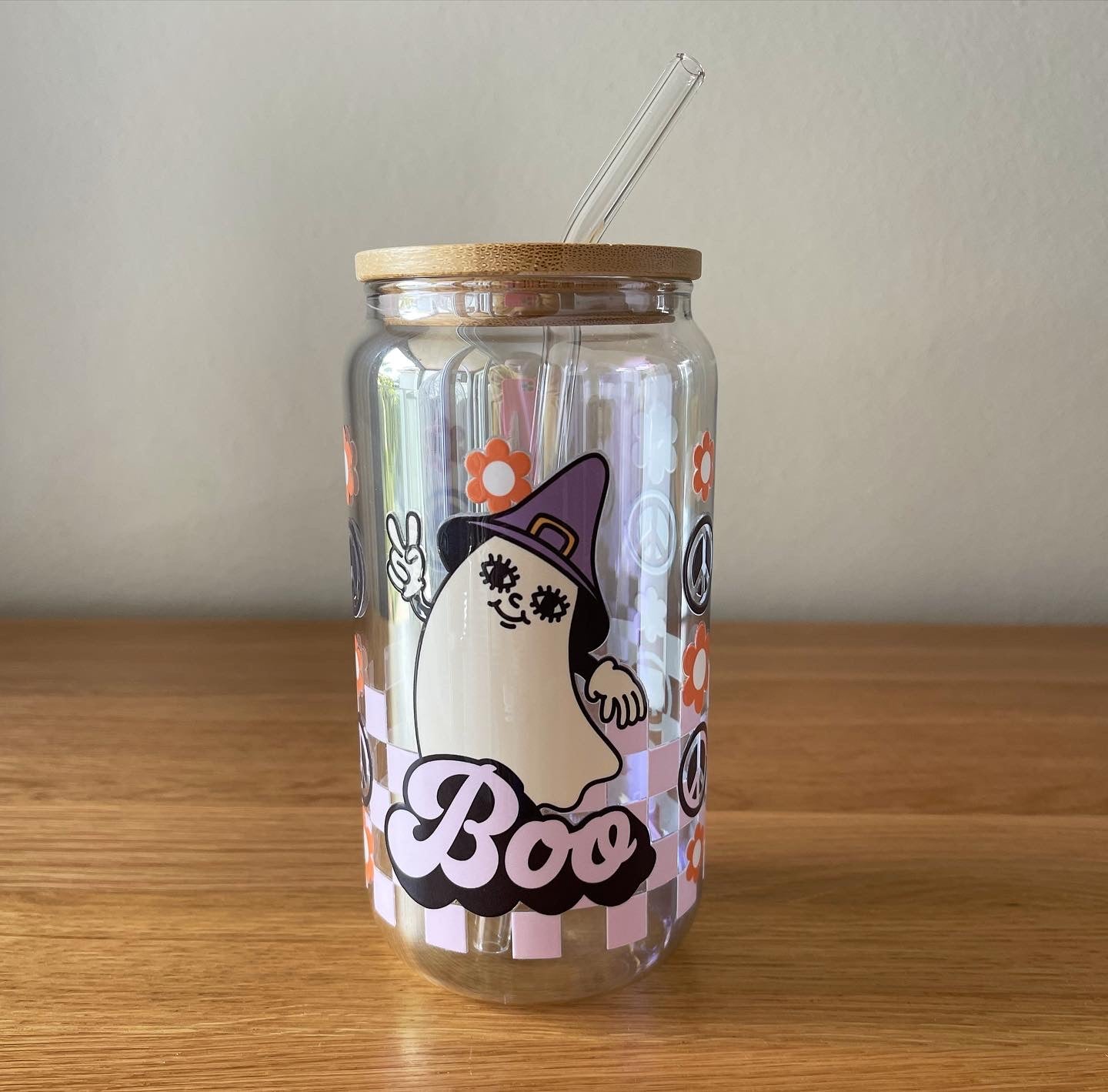 Iridescent Can Glass Tumbler with Lid and Glass Straw - 500ml/16oz